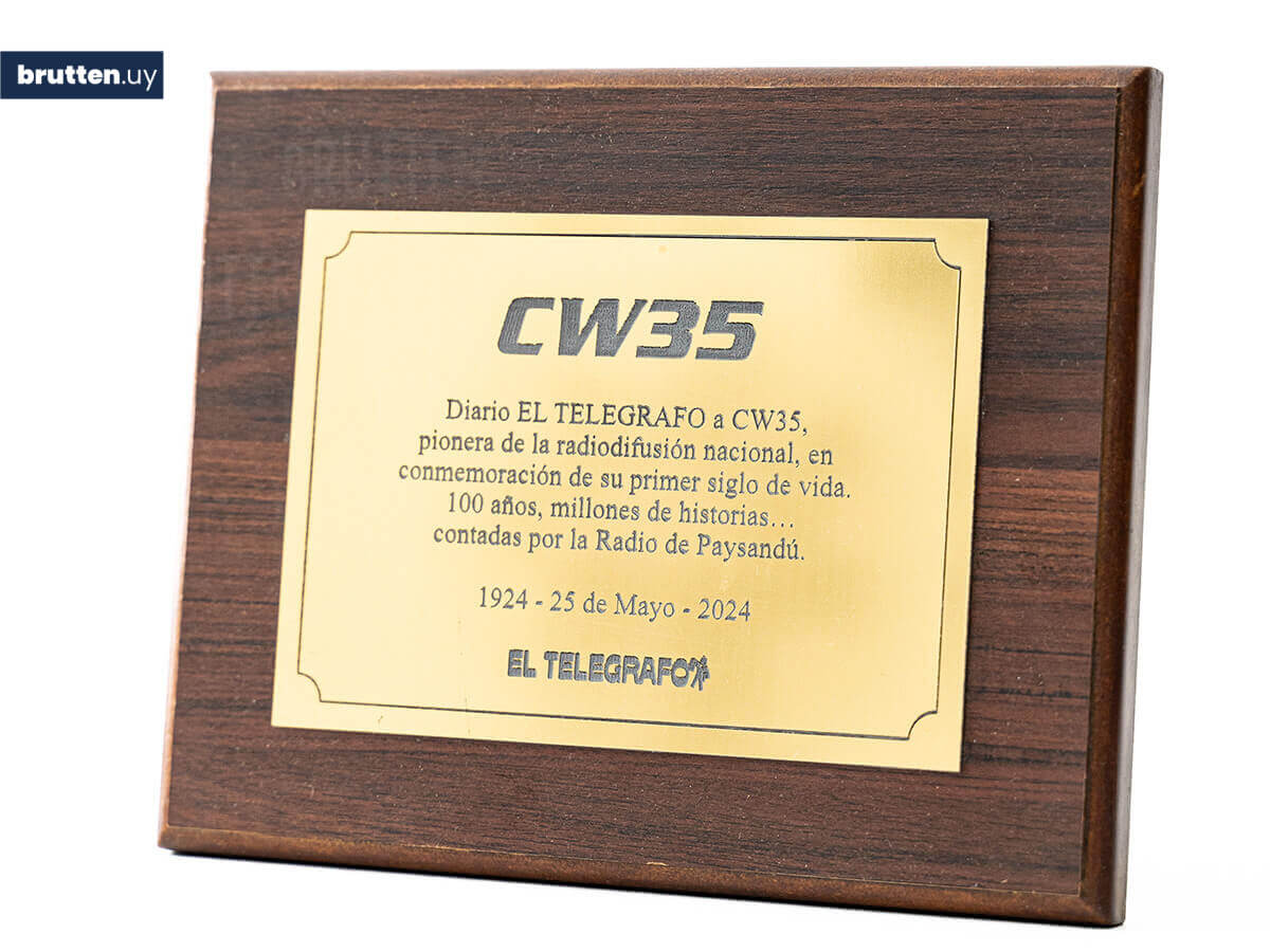 Placa de reconocimiento en metalex con base de madera.